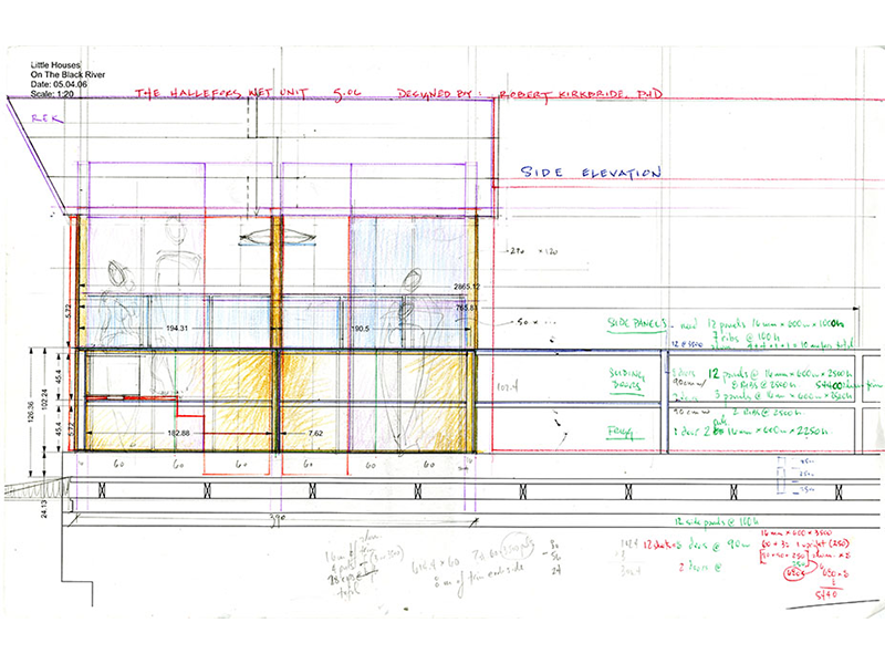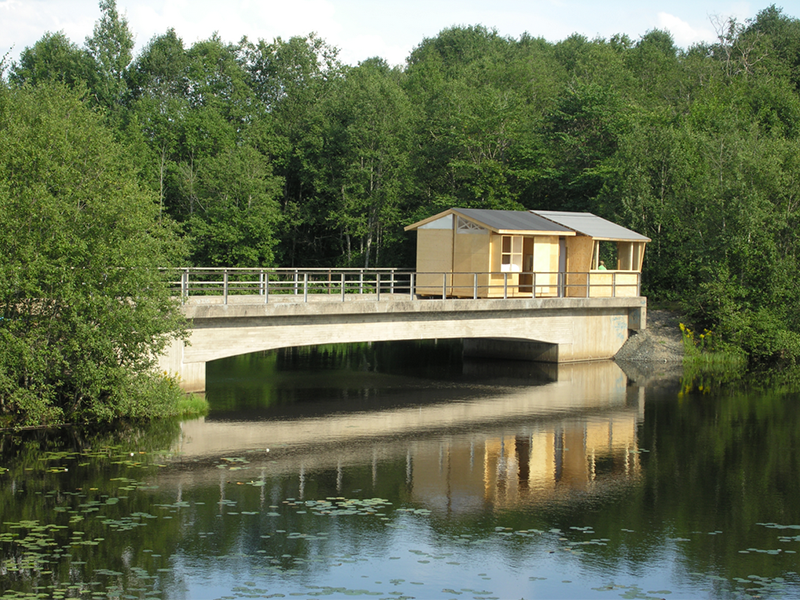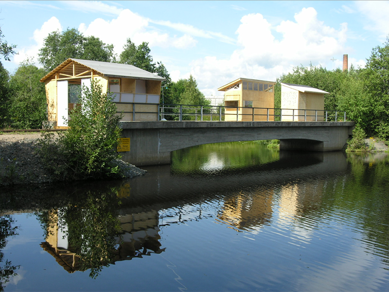 Conceived as a collaboration among students and faculty from Parsons, Konstfack and St. Etienne, Little Houses on the Black River was developed across the 2005-06 academic year to explore potentials of sustainable shelter. In need of temporary housing for designers, scholars and visitors, the House of Design (Formens Hus) sponsored a proposal by Tony Whitfield (Chair, Parsons BFA Product Design) and Lars Wieselgren (Manager, Formens Hus) to design and construct seasonal dwellings on a former industrial railway bridge over the Black River. This site offers visitors a reminder of the town’s industrial heritage, while serving as a model for the adaptive reuse of existing infrastructure. The existing bridge and its rails also provided a ready-made foundation for the new dwellings, minimizing the ecological impact of construction.