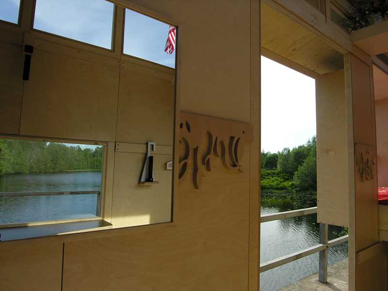 A third structure, the Hällefors Gatehouse, or “wet unit,” provided residents with a 10m2 shared kitchen, dining/work area, shower and a waterless Danfo toilet. This structure was designed by me, based on a program determined with students and faculty in an intensive design-build timeline. The three structures and their supporting deck, built directly onto the existing rails, were installed in ten days by Parsons faculty and staff. As such, the project pursued the notion of sustainability in a zone between traditional practices of architecture and product design, through an integration of “universal” product and immediate context (site and cultural memory), with the aim to unite regional wisdom with global concerns.
