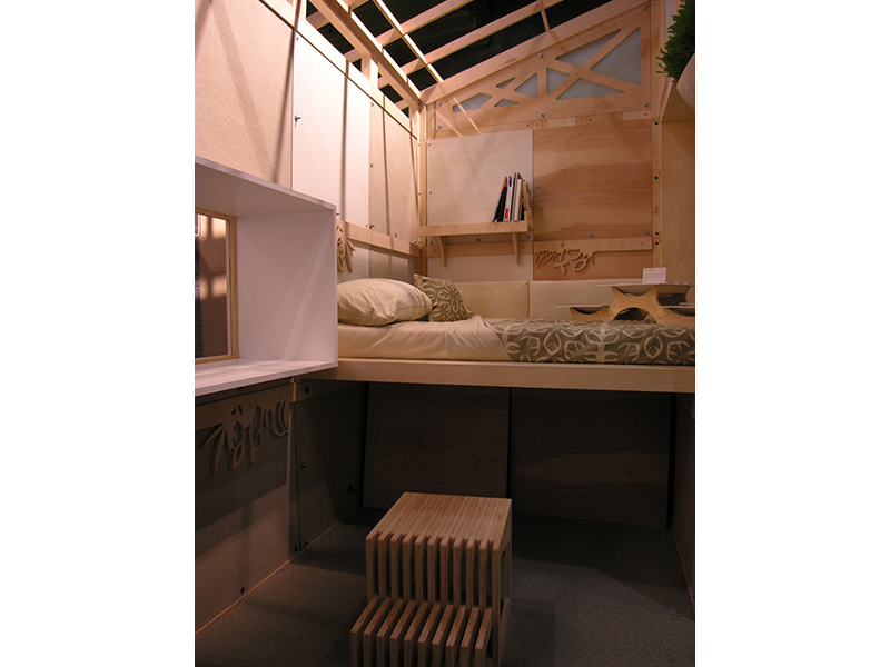 Prior to its construction in Sweden, the Parsons mobile unit was first installed at the International Contemporary Furniture Fair (ICFF) in New York City in May 2006, where it received the Editors’ Choice Award for Best Design School Entry. Two weeks later, students and faculty gathered in Sweden, where we constructed and installed the small cluster of dwellings under the auspices of the midsummer Scandinavian sun, with sponsorship from the Formens Hus, IKEA, and local manufacturers. Later that year, the project was exhibited in the 2006 St. Etienne Biennale. I’ve written further about the Little Houses project in the article “Upstream/Downstream,” and it has been featured in the books Tiny Houses, and Spacecraft as well as the journals C3, Metropolis, Mark Magazine, Azure, surface, and Metropolitan Home.